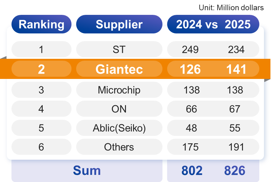 ・Giantec 2025年全球EEPROM销售额达1.41亿美元,同比增长11.9%,增速远超行业平均水平(3.0%)